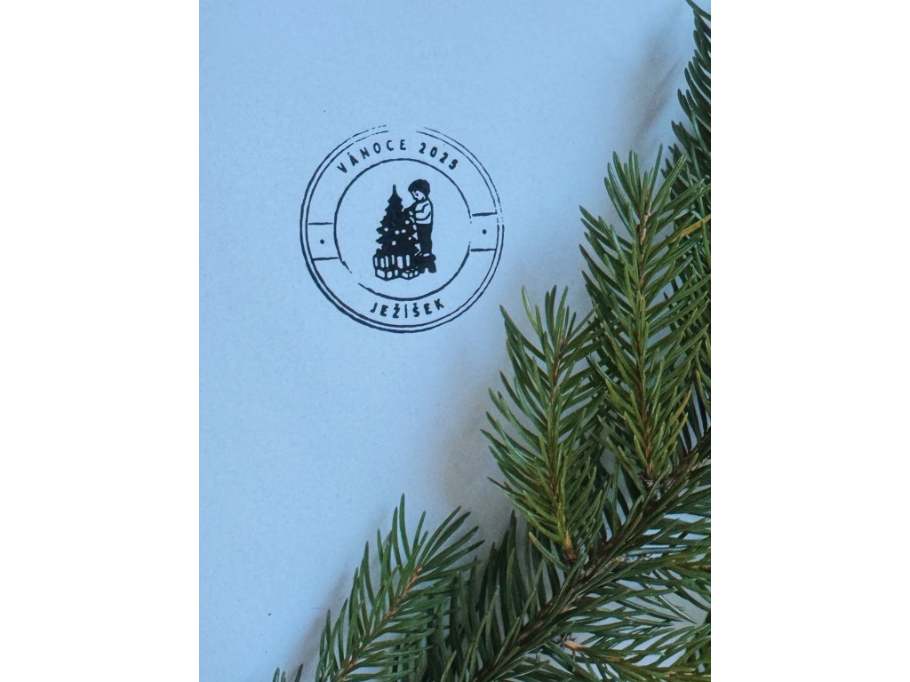 Toto razítko je použito i na letošních Ježíškovských poštovních etiketách (ke koupi zde) a samozřejmě dopisech od Ježíška na míru (nechte poslat svému dítku zde )